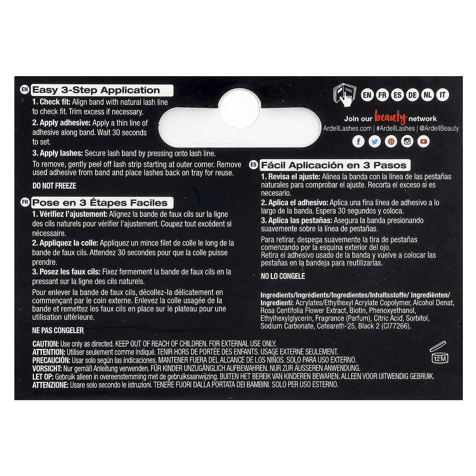 Para remover, retire suavemente a fita dos cílios começando pelo canto externo. Remova o adesivo usado da fita e coloque os cílios de volta na máscara para reutilizar.