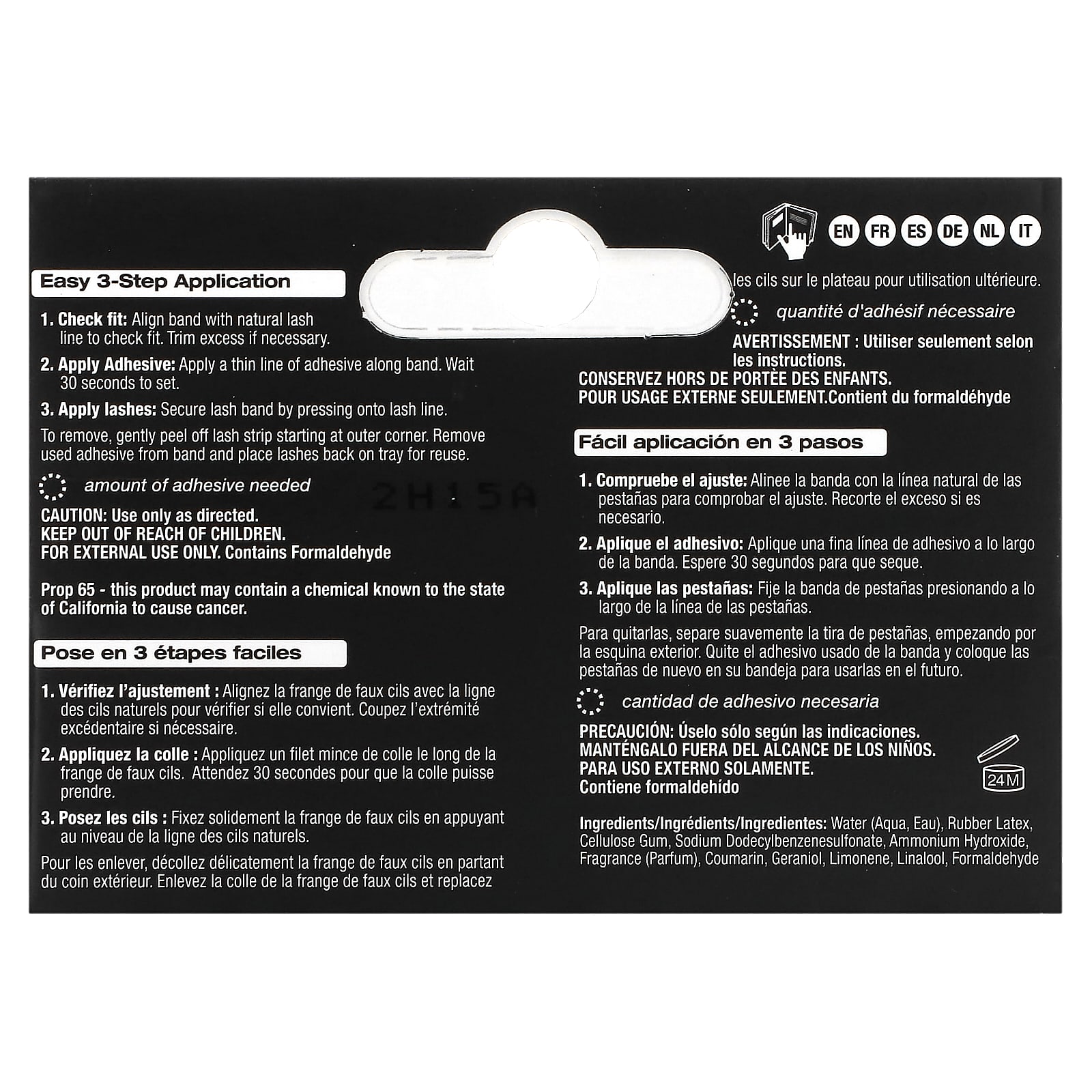 Para remover, retire suavemente a faixa dos cílios, começando pelo canto externo. Remova o adesivo usado da faixa e coloque os cílios de volta na bandeja para reutilização.