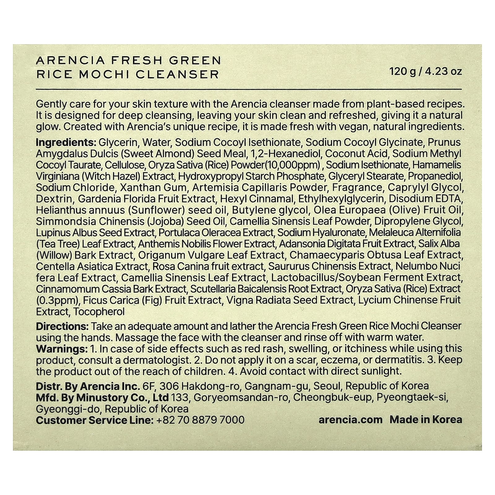 Arencia Gel de Limpeza de Mochi de Arroz Verde Fresco 120 g (423 oz) – Arencia Beleza Limpeza Facial Limpadores faciais K-Beauty.