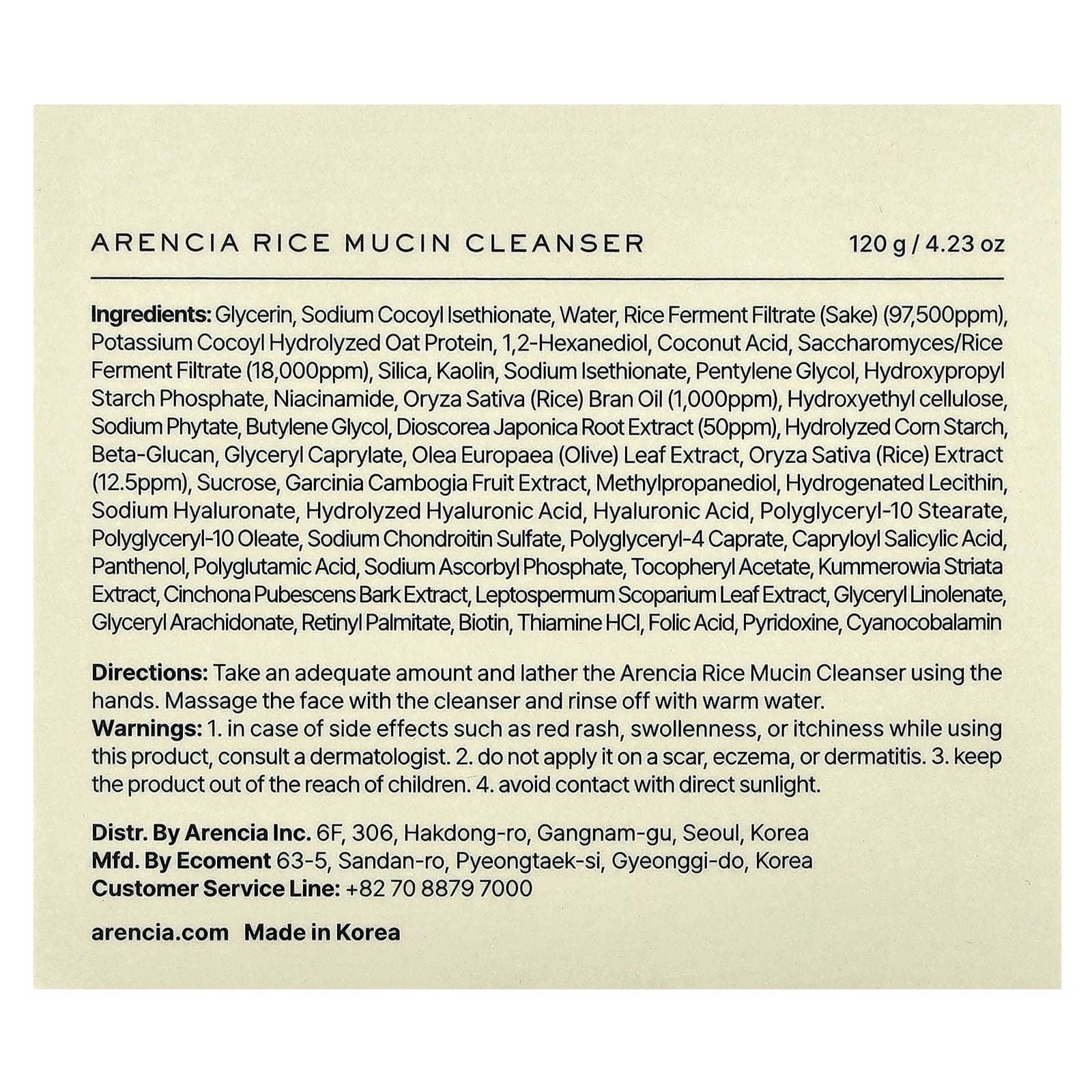 Arencia Gel de Limpeza de Mucina de Arroz 120 g (423 oz) – Arencia Beleza Limpeza Facial Sabonetes Faciais Limpeza facial K-Beauty.