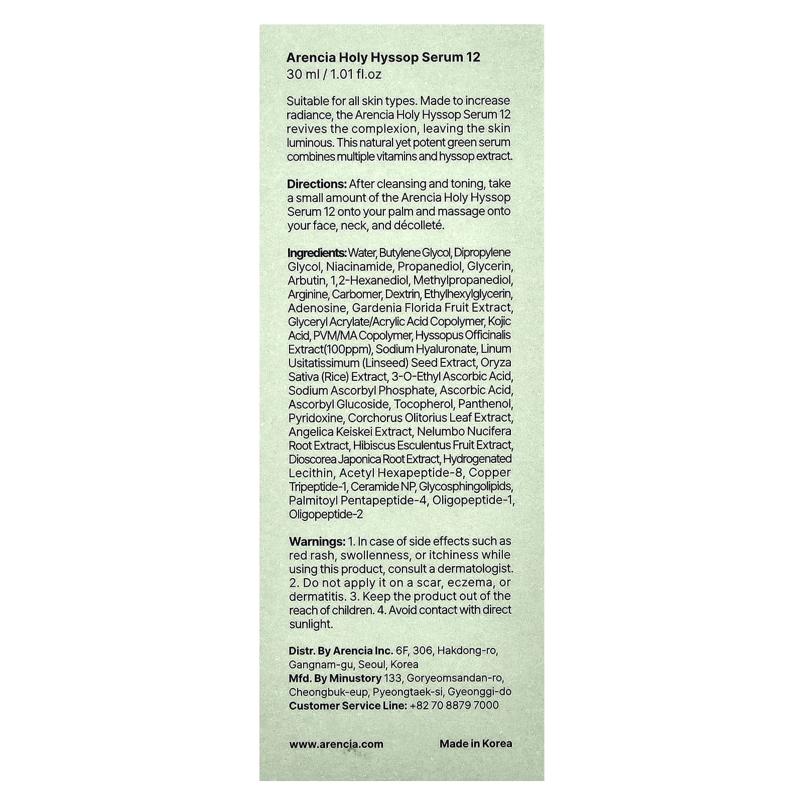 Arencia Sérum de Hyssop Sagrado 12 Todos os Tipos de Pele 30 ml (101 fl oz) – Arencia Beleza Tratamentos e Séruns Séruns Faciais Beleza por Ingrediente Cuidado para a pele com niacinamida.