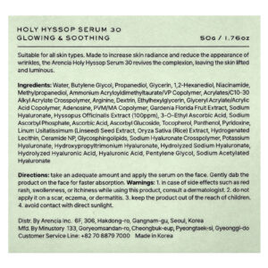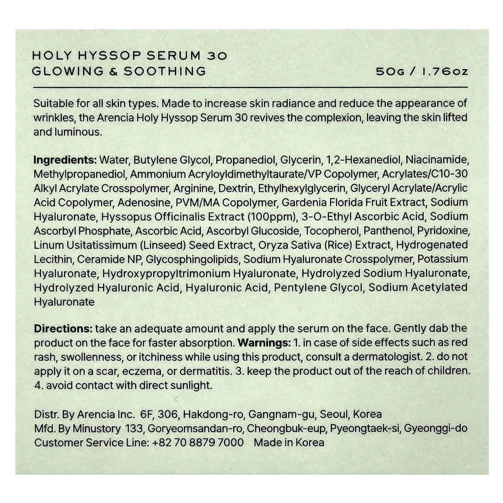 Arencia Sérum de Hyssop Sagrado 30 Todos os Tipos de Pele 50 g (176 oz) – Arencia Beleza Tratamentos e Séruns Séruns Faciais Beleza por Ingrediente Cuidado para a pele com niacinamida.