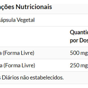 Disponíveis em uma fórmula de alta potência e em frasco com 120 cápsulas vegetarianas, essa combinação permite com que você obtenha as quantidades necessárias dessa substância para complementar a sua dieta alimentar;