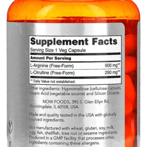 Arginina 500mg e Citrulina 250mg Now Foods 120 Veg Caps – Importado