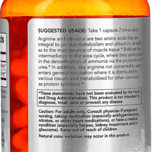 Arginina e citrulina são dois aminoácidos essenciais para o metabolismo e utilização de proteínas, bem como para a manutenção do tecido muscular.* Ambos são intermediários chave no ciclo da uréia, onde participam da desintoxicação da amônia por meio da produção de uréia;