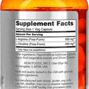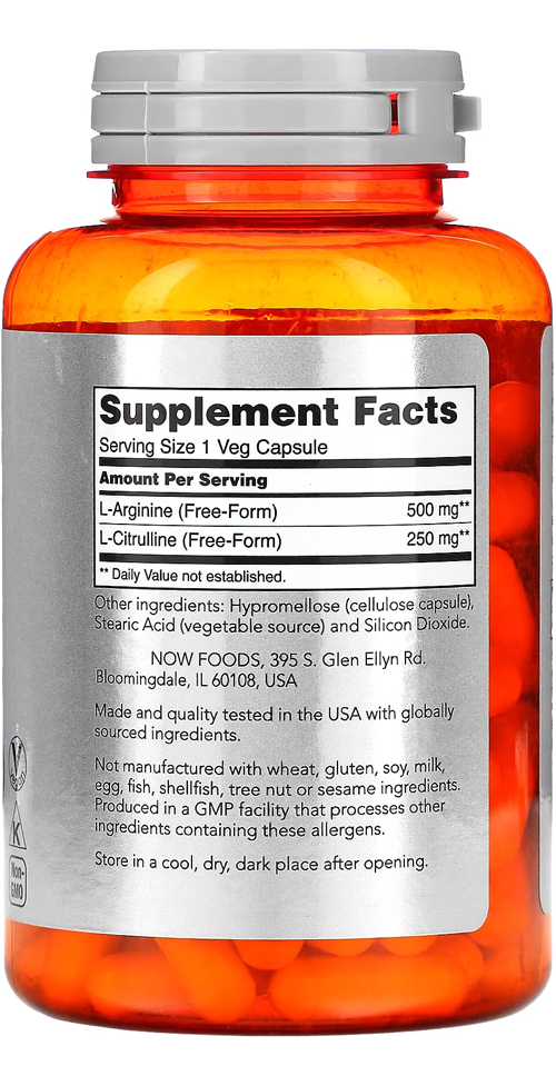 Arginina 500mg e Citrulina 250mg Now Foods 120 Veg Caps – No Brasil