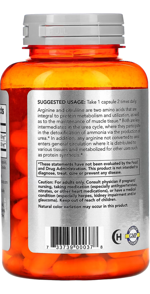 Arginina e citrulina são dois aminoácidos essenciais para o metabolismo e utilização de proteínas, bem como para a manutenção do tecido muscular.* Ambos são intermediários chave no ciclo da uréia, onde participam da desintoxicação da amônia por meio da produção de uréia;