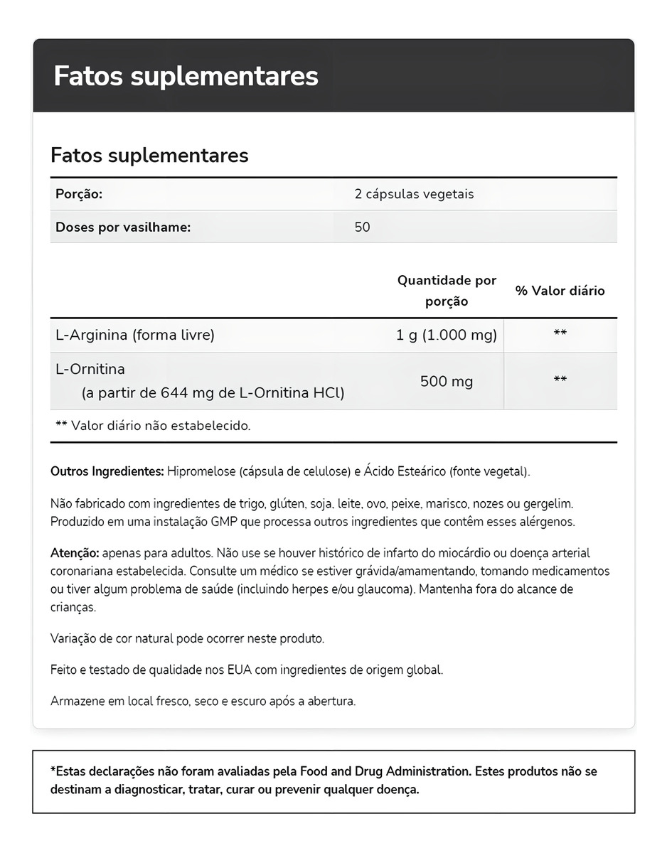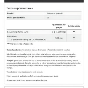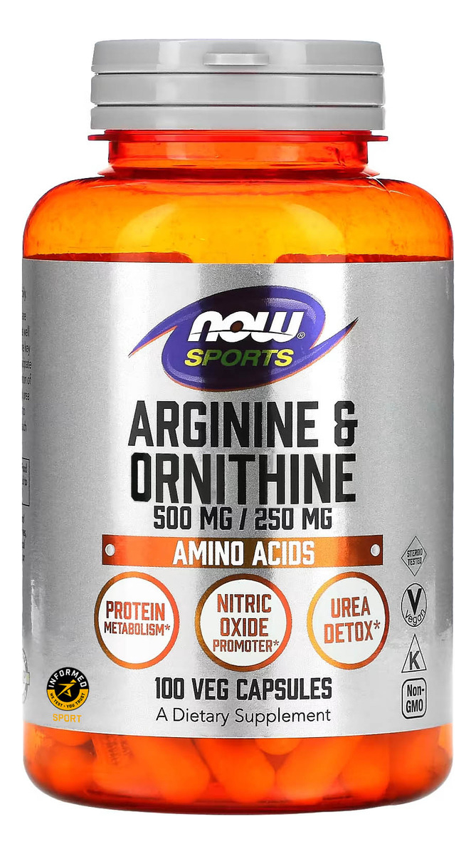 Arginina & Ornitina combina dois aminoácidos complementares em um suplemento conveniente. A arginina é necessária para a eliminação adequada da ureia do corpo, o que ocorre por meio de um ciclo metabólico crítico que desintoxica o corpo dos compostos de nitrogênio que são subprodutos normais do metabolismo das proteínas. A ornitina é sintetizada a partir da arginina e é um precursor da citrulina, prolina e ácido glutâmico. Ambos os aminoácidos são populares entre atletas e outros indivíduos ativos.