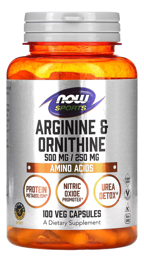Arginina e Ornitina 500/250mg Now Foods 100Cáp Produto Importado