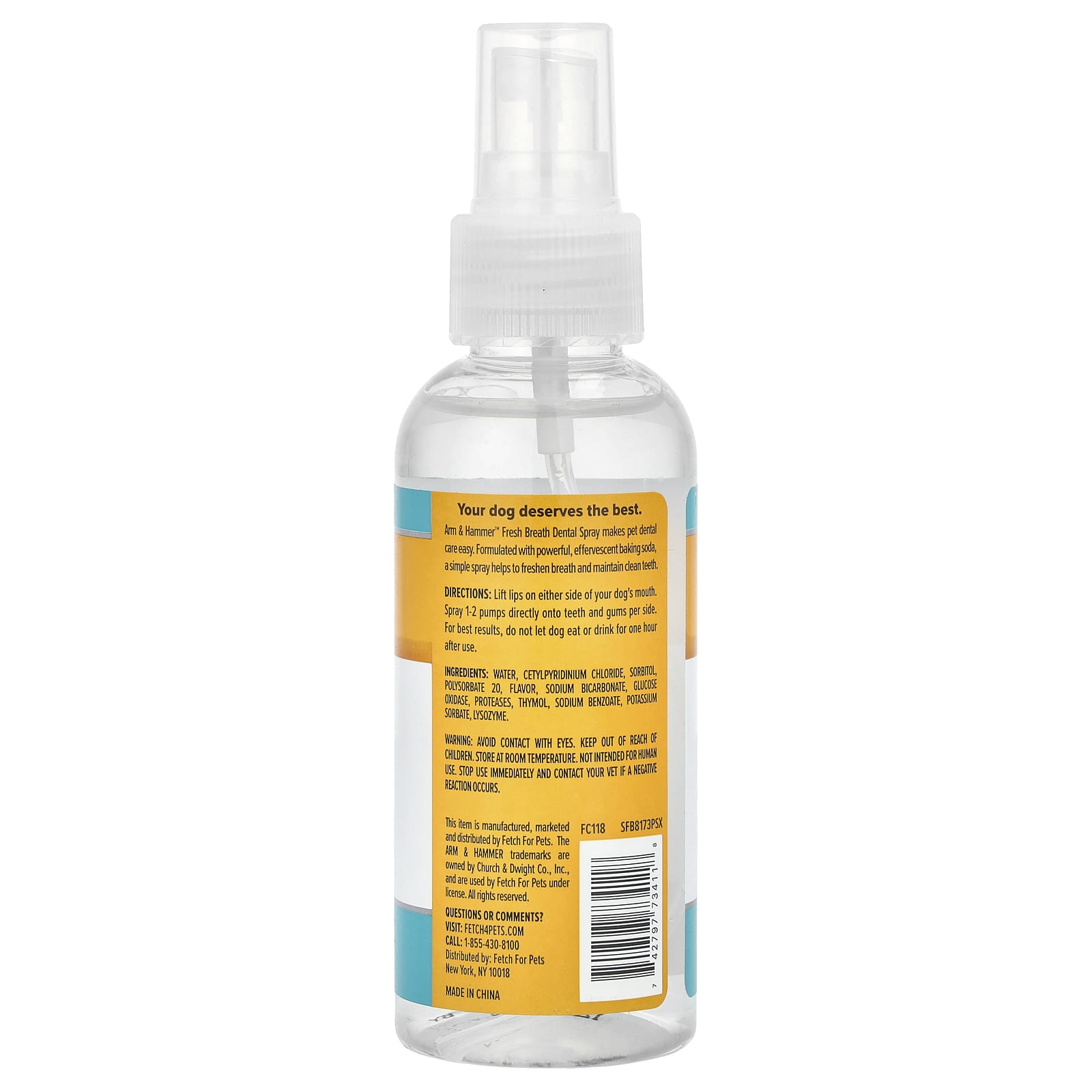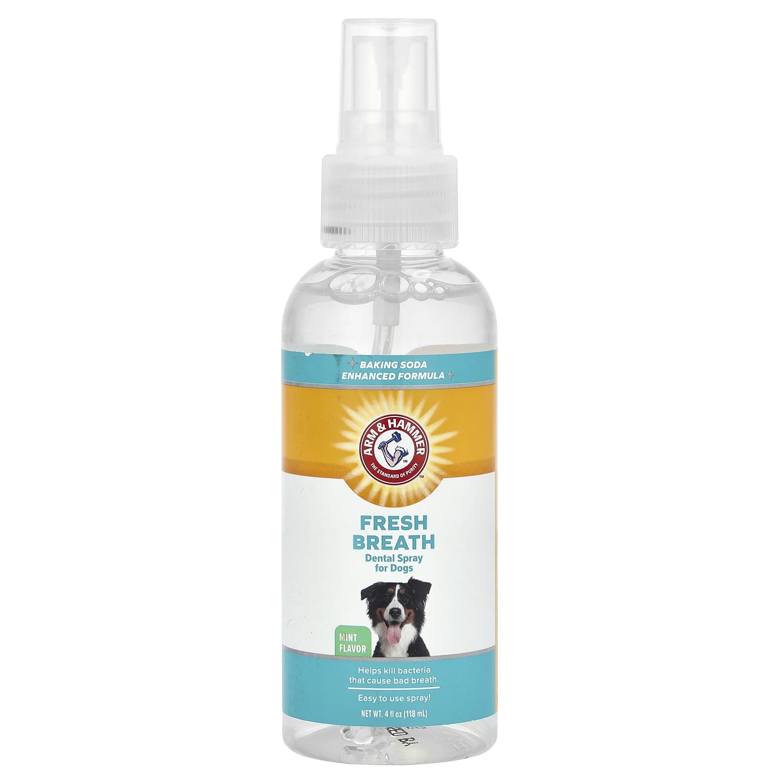O Spray Dental Hálito Fresco da Arm & Hammer™ facilita os cuidados com os dentes dos animais de estimação. Formulado com bicarbonato de sódio poderoso e efervescente, um simples spray ajuda a refrescar o hálito e manter os dentes limpos.