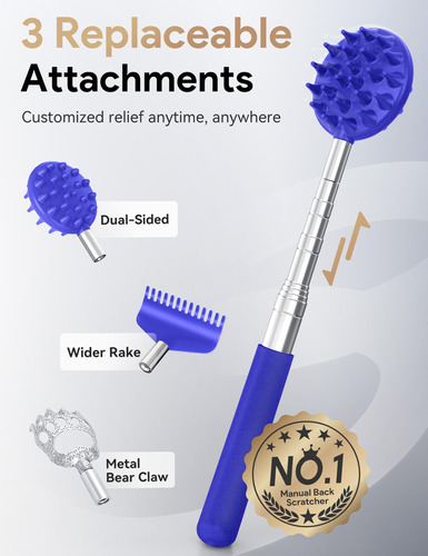 Let Tukuos 32 telescoping back scratcher with 3Pcs detachable heads help you to scratch any itchy spots Why Choose us? 1. 3 individual heads: come with 3pcs heads (claw, spikes, rake) for free to replace or use with family. 2. Nice gift choice for families and pets. Designed to satisfy different needs, especially for people with skin issues, pregnancy, arthritis and limited mobility 3. Premium material ensures repetive uses, never rust or break 3. Suitable for traveling or carry with you in your pocket and handbag in daily life benefiting to compact design Specifications: Extends: 82.5cm/32inch Folds: 20.5cm/8inch Material: Alumium, stainless steel, soft rubber, ABS plastic Product Weight: 83.4g/2.9oz Package Included 1*Telescoping Pole 1*Dual Sided ABS Scratching Spikes 1*Metal Claw 1*Metal Rake 1*Storage bag – 4-IN-1 Design: 4 LARGE detachable back scratcher heads (Unique-designed dual-side scratching spike, claw, rake) allows you to replace at your wish or use with your families for variuos scratching experience on Back, Neck, Head, Beard, and Body. Perfect as christmas gifts stocking stuffers for men women. 8 to 32 Inches enable your beloved dad get all of the hard-to-reach spots – STRONG Extenable & Travel Size: Allow to retracts to 8 short for easy storage for travel,and extends up to 32 long making it easier to hit the right spots – Sturdy & Lengthened Handle: 6 sections thicken stainless-steel handle specially designed enables it to reach every inch of your back and soft rubber at the handle bottom allows you to get a good and comfortable grip – Unique Gifts for Any Occasion: Perfect Christmas gifts xmas gifts stocking stuffers for men women dad, mom, friends gift, family gift, gift for pets, Birthday gifts, or other gifting occasion. This 3-1 scratcher work as head scratcher ,send the gift to young or old, men or women and then they will enjoying themselves by self-scratching – What You Receive: 1 x Telescoping Pole, 1 x Dual Sided ABS Scratching Spikes, 1 x Metal Claw, 1 x Metal Rake, 1 x Storage bag, and friendly customer service