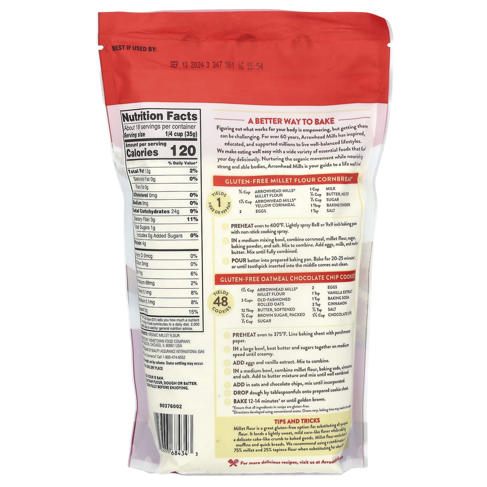 Arrowhead Mills Farinha de Milhete Orgânico Sem Glúten 652 g (23 oz) – Arrowhead Mills Alimentos Fermentos, farinhas e misturas.