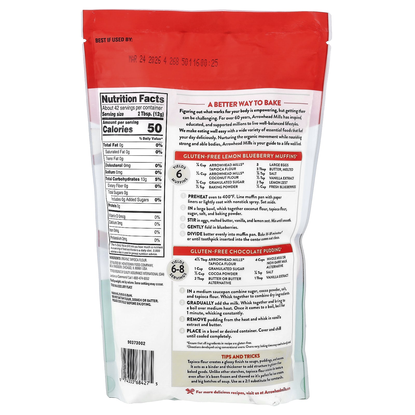 Arrowhead Mills Farinha de Tapioca Orgânica Sem Glúten 510 g (18 oz) – Arrowhead Mills Alimentos Fermentos, farinhas e misturas.