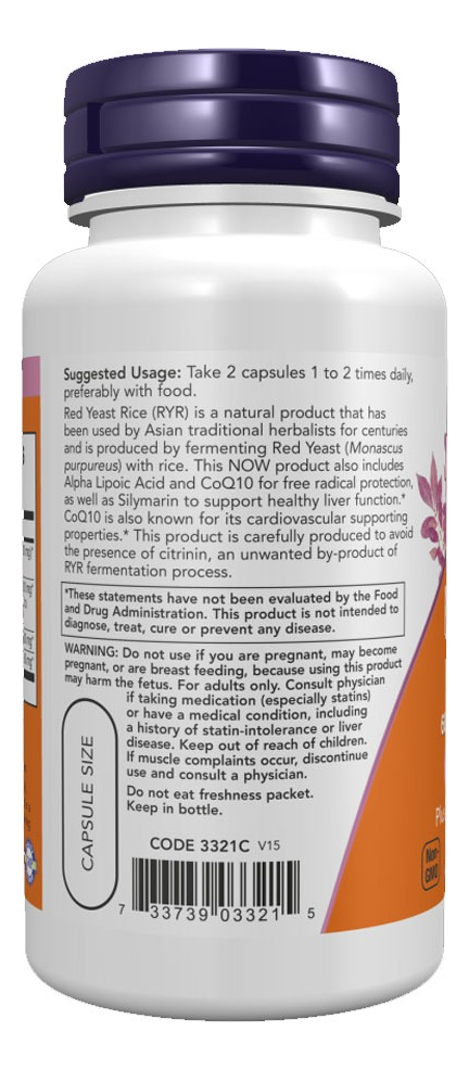 Arroz Vermelho 60mm + Coq10 Now foods 60Cáps Produto Importado