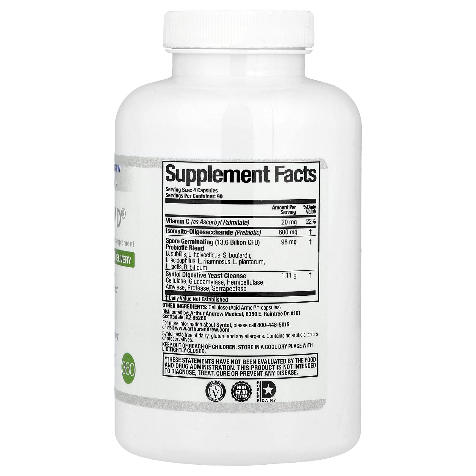 Arthur Andrew Medical Syntol AMD Entrega Avançada de Microflora 500 mg 360 Cápsulas – Arthur Andrew Medical Suplementos Saúde Intestinal Enzimas Digestivas Probióticos.