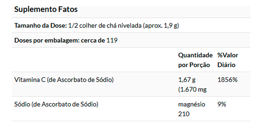 4. Rotina Simplificada: A embalagem com 277g de Ascorbato de Sódio puro facilita o consumo diário, tornando-o uma solução prática para incorporar à rotina.