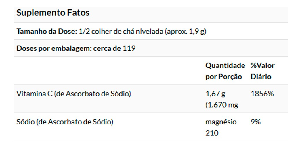 4. Rotina Simplificada: A embalagem com 277g de Ascorbato de Sódio puro facilita o consumo diário, tornando-o uma solução prática para incorporar à rotina.