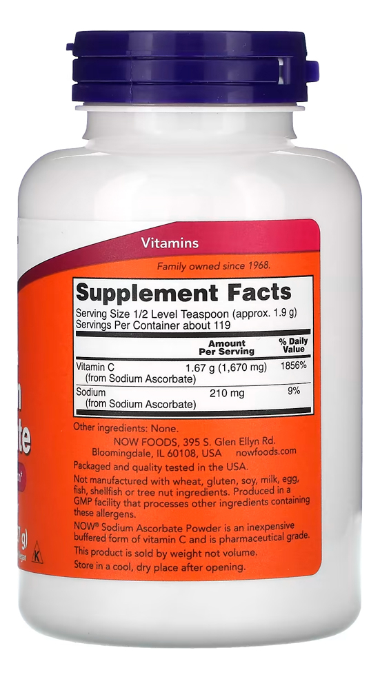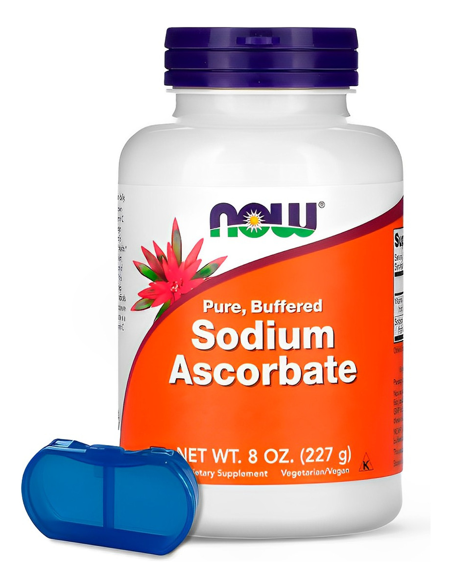 Ascorbato de Sódio Now Foods 277g Puro Importado + Porta Cápsulas