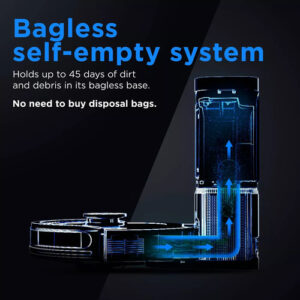 A base sem saco não exige nenhuma compra adicional de sacos de descarte, como os robôs tradicionais de esvaziamento automático.