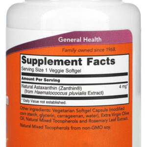 Astaxantina 4mg Now Foods 60vegs Softgel Sabor Sem Sabor
