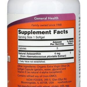 Astaxantina (astaxanthin) Now Foods 4mg 90 Softgels