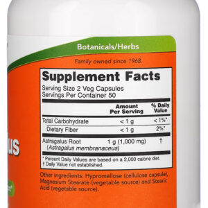 Astragalus 500mg Now Foods 100 Veg Cápsulas Sabor Sem Sabor