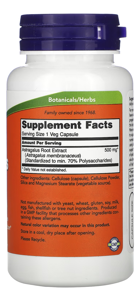 Astragalus Erva Chinesa 500mg Now Foods 90Veg Cáps Produto Importado Original