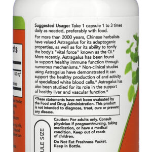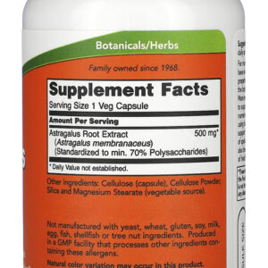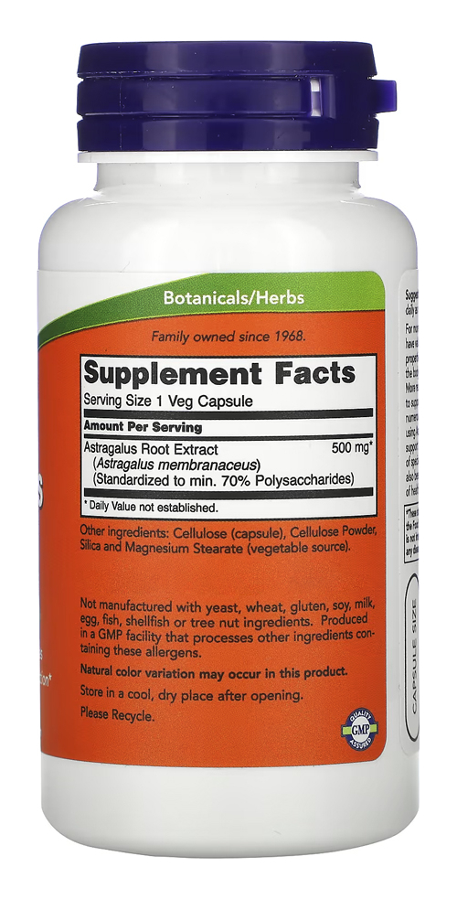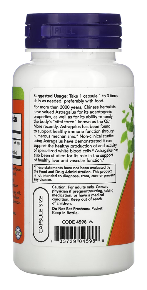 Astragalus Erva Chinesa 500mg Now Foods 90Vcaps Herbalistas chineses valorizaram o Astragalus por suas propriedades de tonificar o Qi. Apoia a função imunológica Astragalus também foi estudado quanto ao seu papel na função vascular. Outros ingredientes: celulose (cápsula), celulose em pó, sílica e estearato de magnésio (fonte vegetal). Não contém fermento, trigo, glúten, soja, leite, ovo, peixe, marisco ou ingredientes de nozes. Produzido em uma instalação de GMP que processa outros ingredientes contendo esses alérgenos. Cuidado: apenas para adultos. Consulte um médico se estiver grávida / amamentando, ou se tiver um problema. .