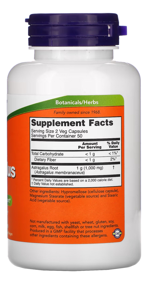 Astragalus Raiz 500mg 100 Veg Cápsulas Importado
