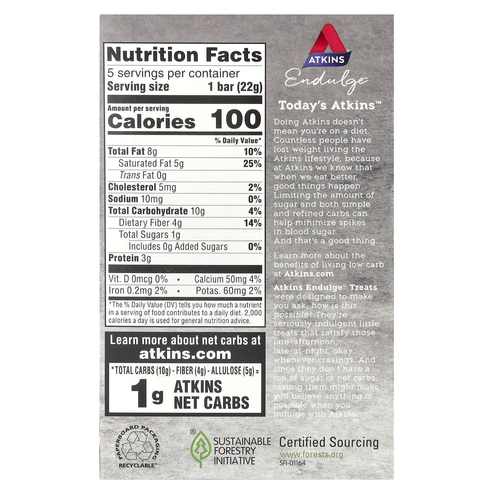 Atkins Endulge™ Barra Crocante 5 Barras 22 g (078 oz) Cada