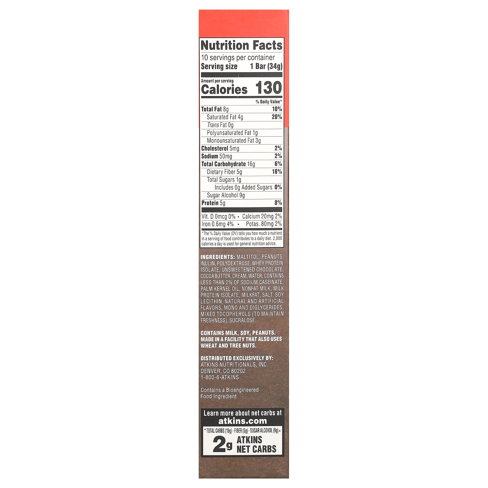 Maltitol, inulina de amendoim, polidextrose, isolado de proteína whey, chocolate não adoçado, manteiga de cacau, creme, água, contém menos de 2% de caseinato de sódio, óleo de palmiste, leite desnatado, isolado da proteína do leite, gordura de leite, sal, lecitina de soja, sabores naturais e artificiais, mono e diglicerídeos, tocoferóis mistos (para preservar o frescor), sucralose.