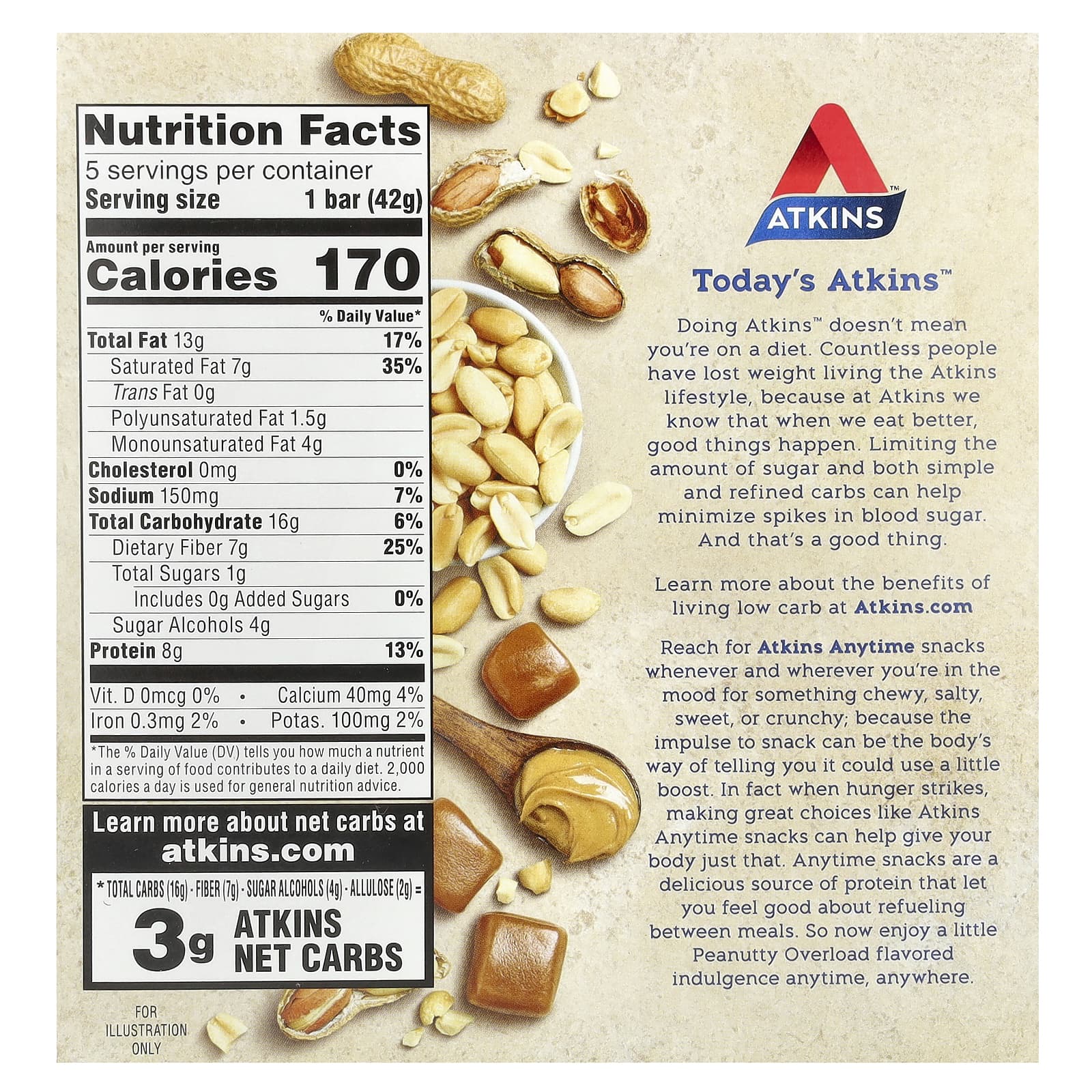Atkins Lanche Barra de Amendoim sobre Sobrecarga 5 Barras 42 g (148 oz) Cada – Atkins Alimentos Barras Petiscos e lanches.