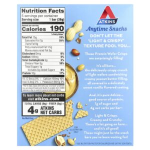 Atkins Lanches a Qualquer Momento Barras de Wafer de Proteína Manteiga de Amendoim 5 Barras 36 g (127 oz) Cada – Atkins Nutrição Esportiva Barrinhas e snacks esportivos Snacks proteicos.