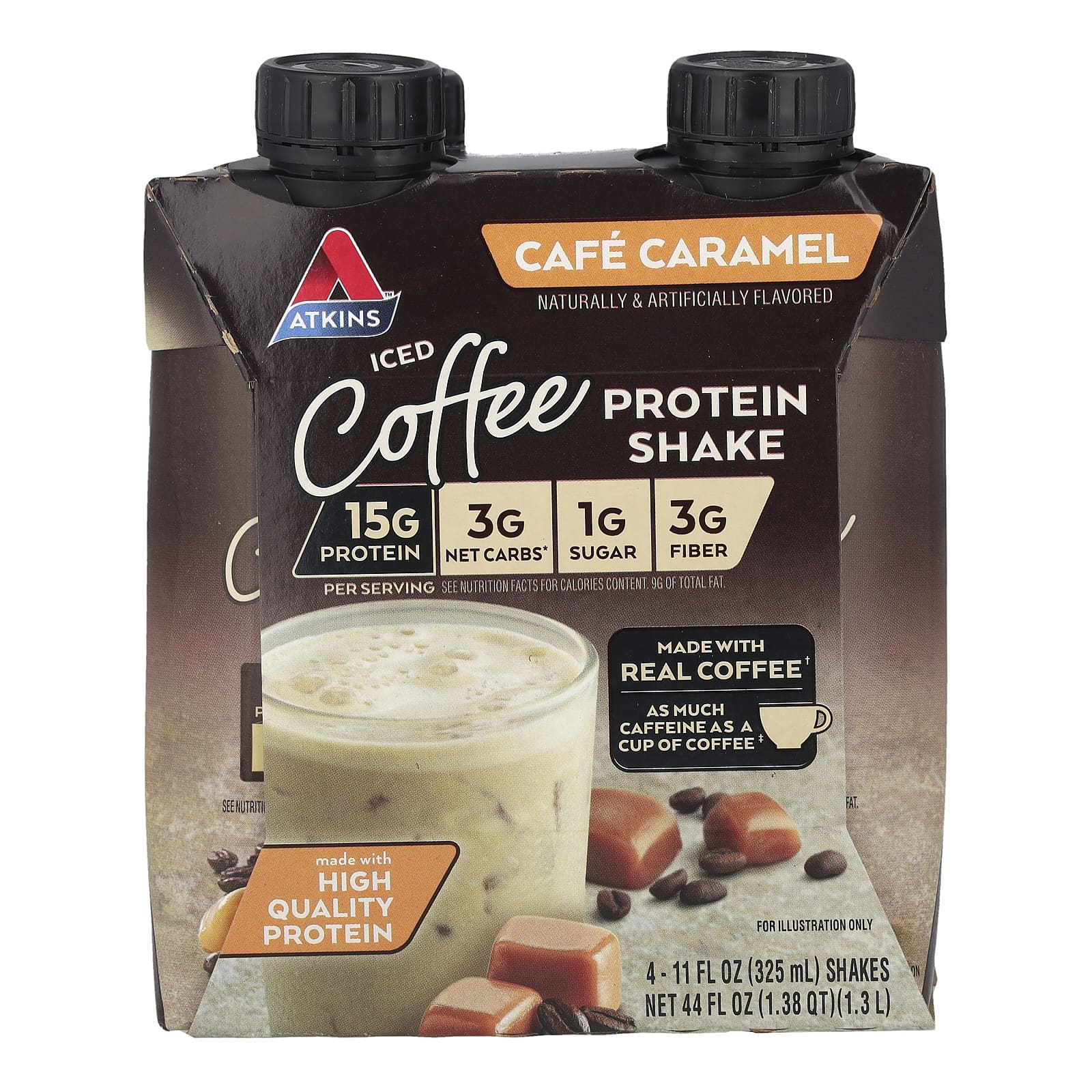 Estimule suas papilas gustativas e o seu dia com o sabor intenso e cremoso do Shake de Caramelo e Café da Atkins®. Saboreie cada gole sabendo que você está ingerindo uma mistura ideal de proteína e fibra com 1 g de açúcar.