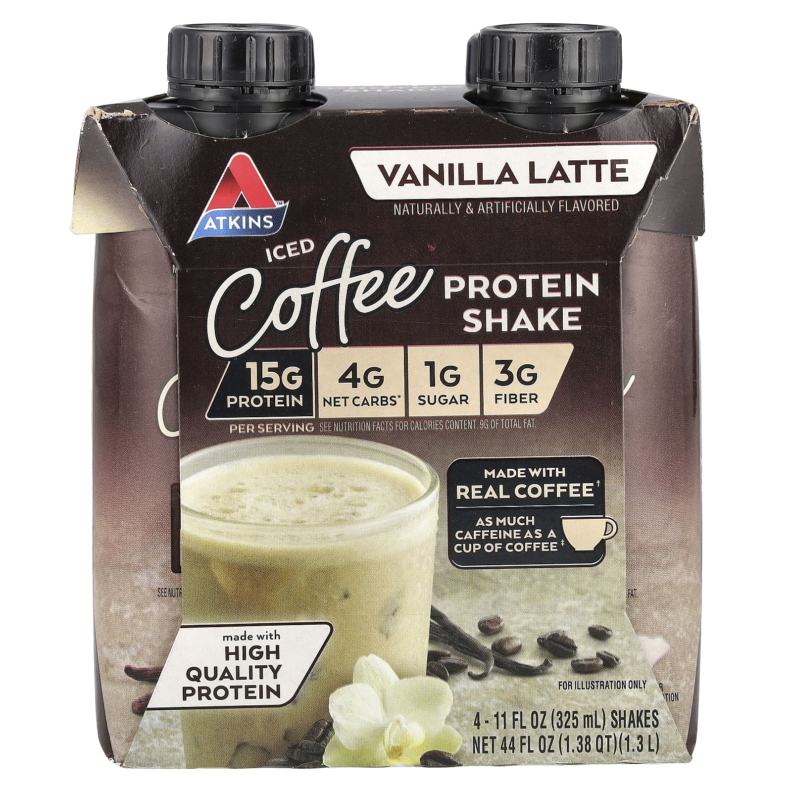 Atkins Shake Proteico de Café Gelado Latte de Baunilha 4 Shakes 325 ml (11 fl oz) Cada – Atkins Nutrição Esportiva Proteína Proteína pronta para beber.