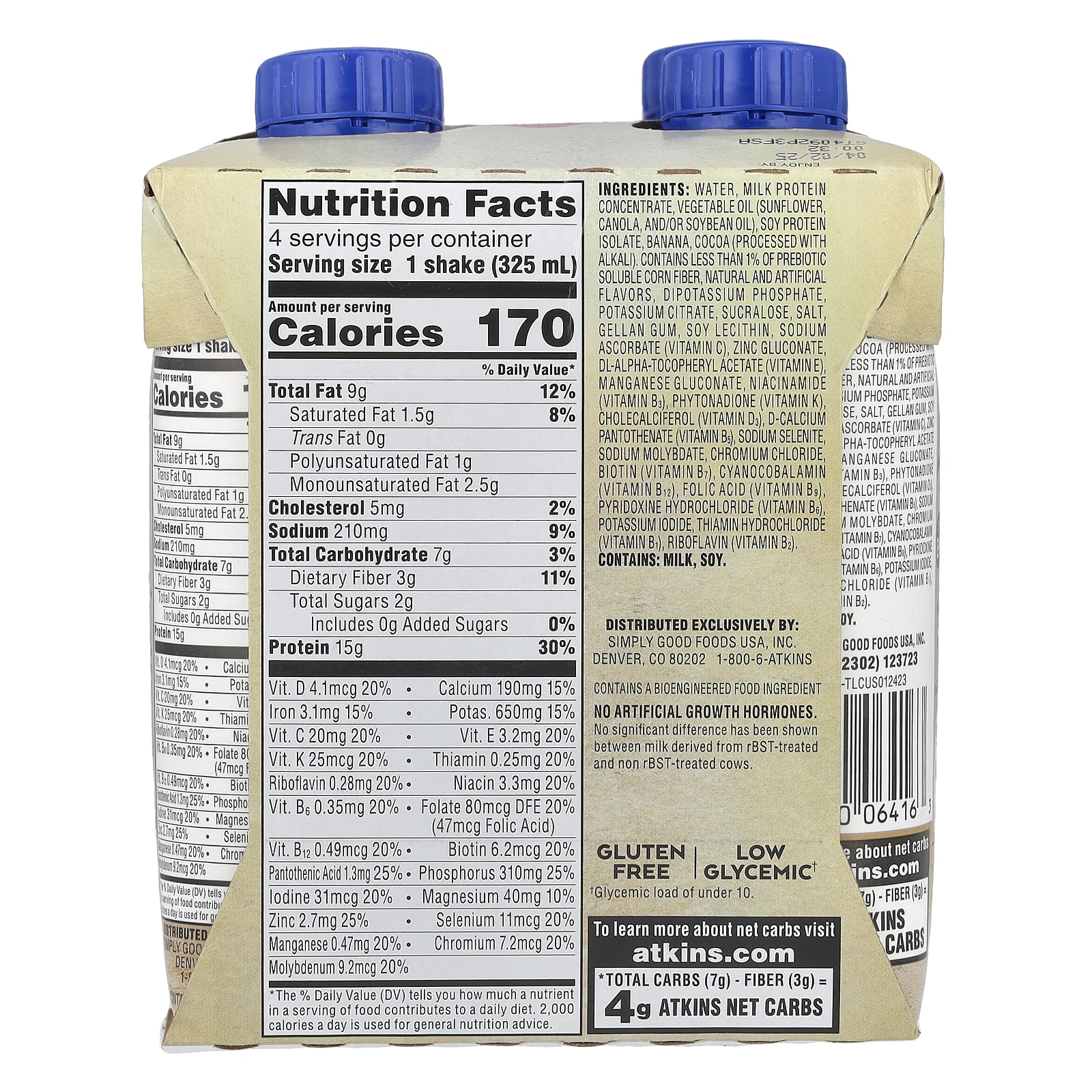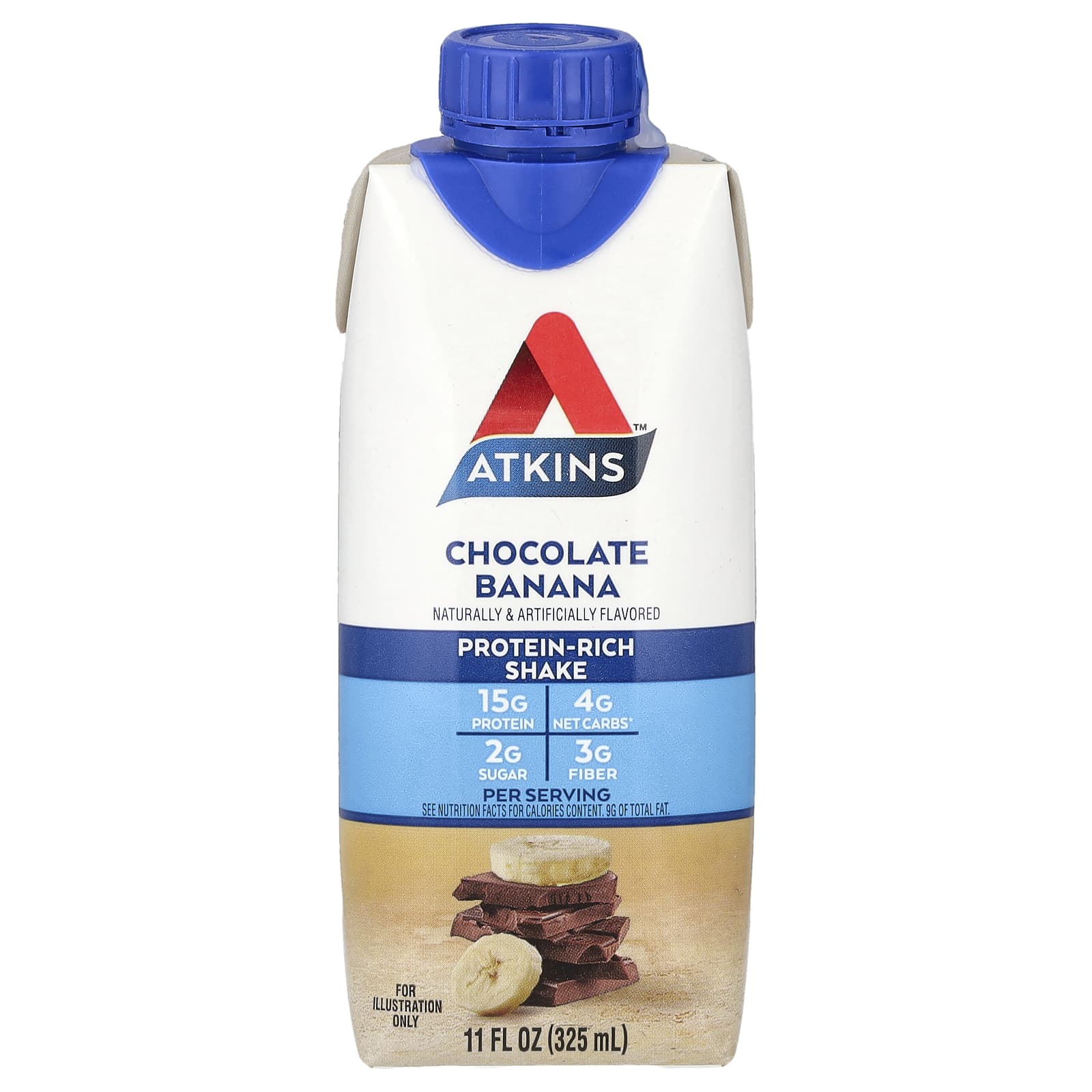 Atkins Shake Rico em Proteína Banana e Chocolate 4 Shakes 325 ml (11 fl oz) Cada – Atkins Nutrição Esportiva Proteína Proteína pronta para beber.