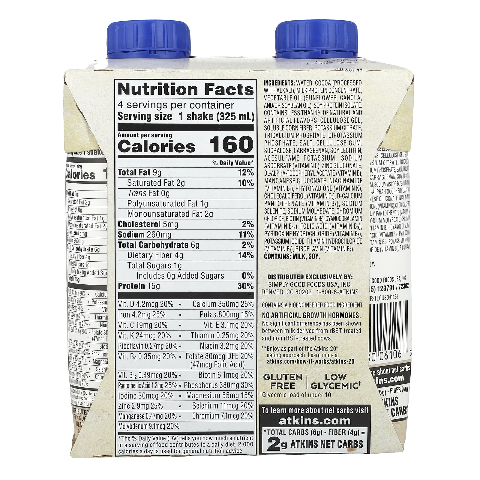 Atkins Shake Rico em Proteína Chocolate Amargo Royale 4 Shakes 325 ml (11 fl oz) Cada