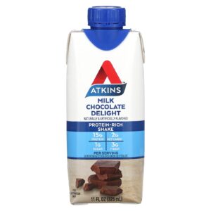 Atkins Shake Rico em Proteínas Delícia de Chocolate ao Leite 4 Shakes 325 ml (11 fl oz) Cada – Atkins Nutrição Esportiva Proteína Proteína pronta para beber.