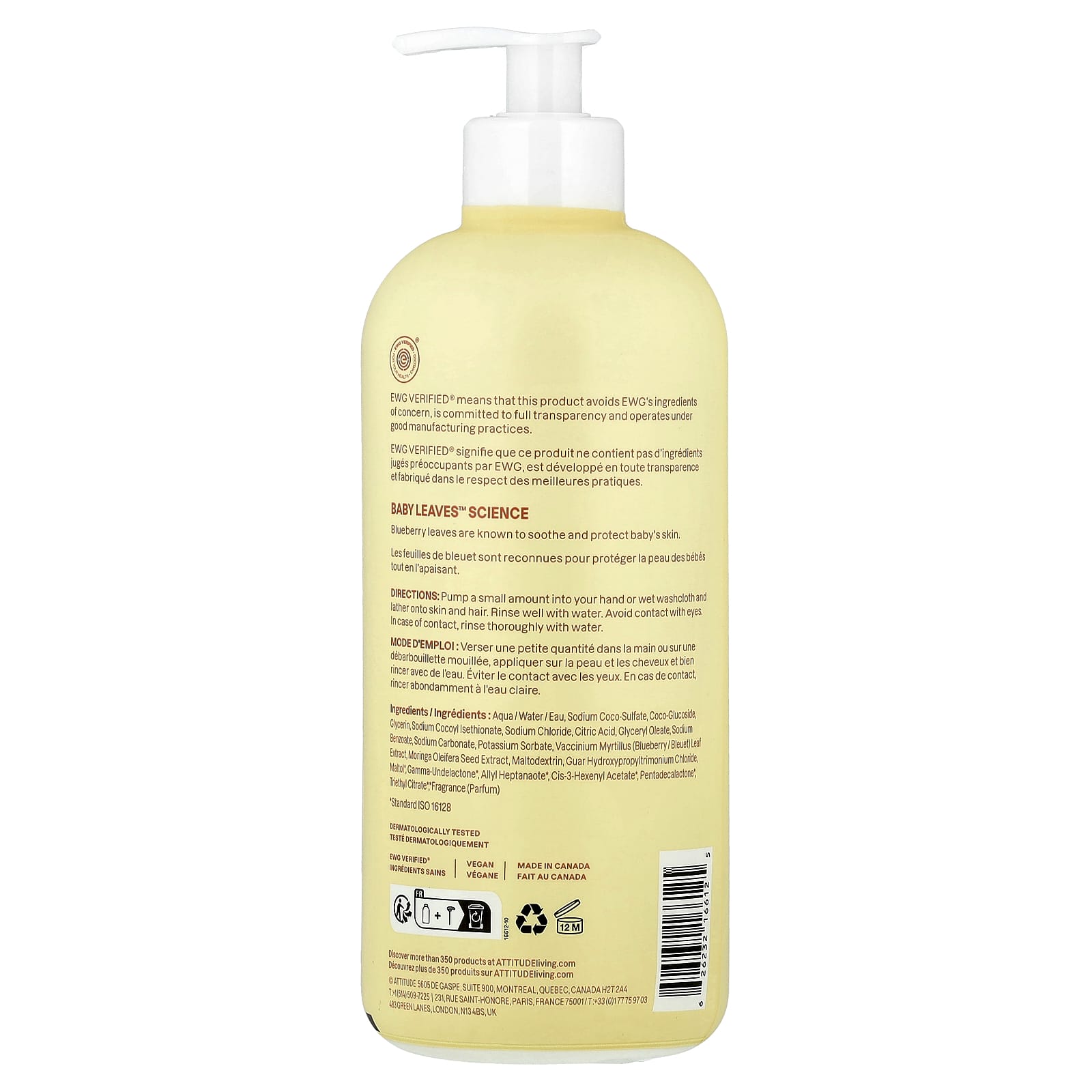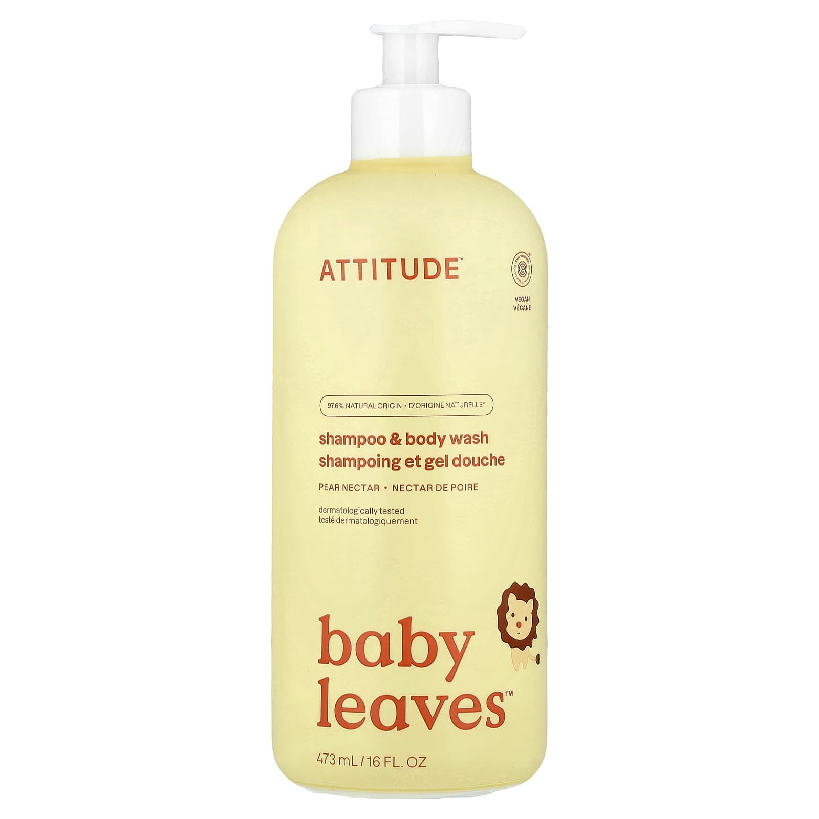 ATTITUDE Baby Leaves Science Shampoo 2-em-1 e Sabonete Líquido Néctar de Pera frasco de 16 oz (473 ml) – ATTITUDE Bebês e Crianças Banho, Pele e Cabelo para Bebês e Crianças Shampoo e Sabonete 2 em 1 para Bebês e Crianças.