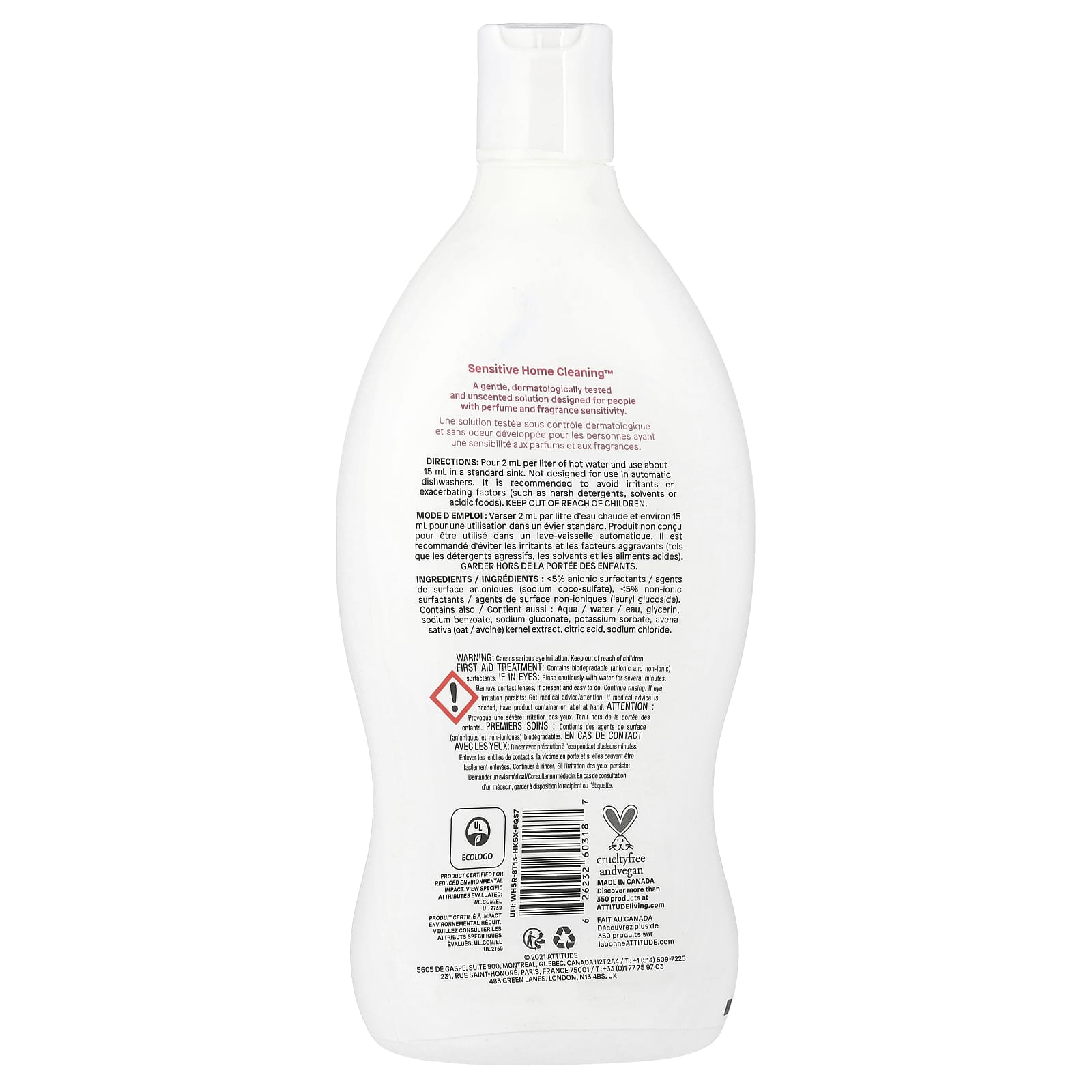 ATTITUDE Bebê Mamadeira Natural e Líquido para Lavar Louça 700 ml (236 fl oz) – ATTITUDE Bebês e Crianças Casa Detergentes para louça de bebê Limpeza Produtos para lavar louça Detergente para Louças e Lava-Louças.