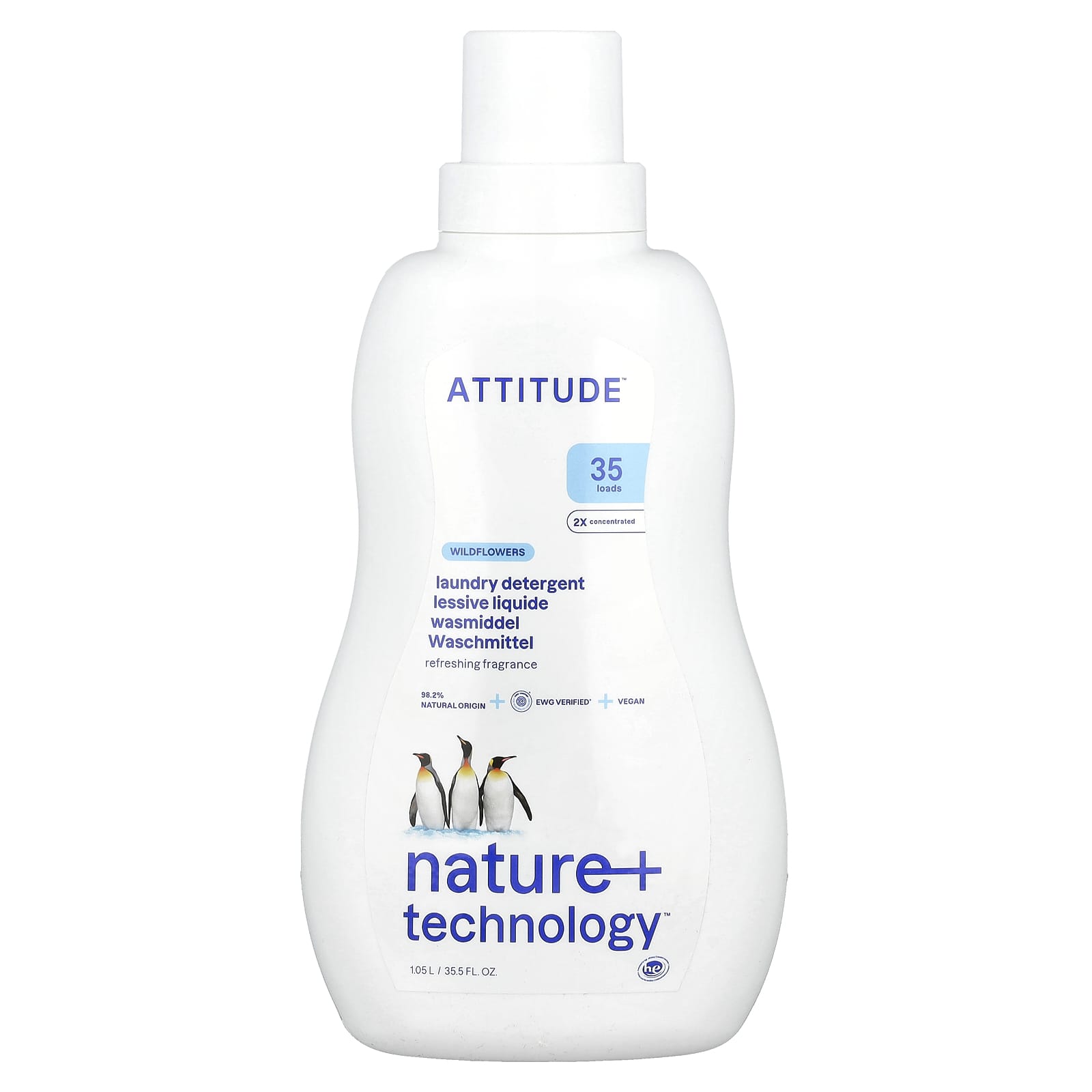 ATTITUDE Detergente para a roupa Flores Silvestres 35 cargas 105 l (335 fl oz) – ATTITUDE Casa Limpeza Produtos para lavanderia Sabão para roupas.