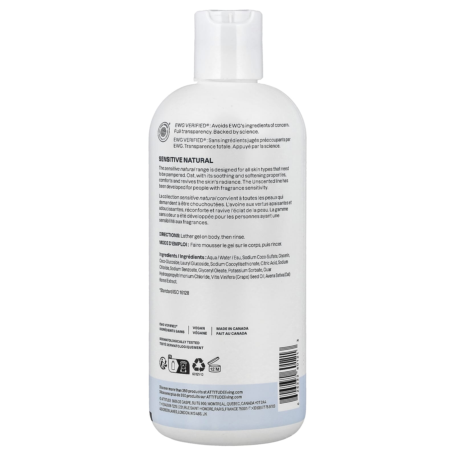 ATTITUDE Sensitive Natural Gel de Banho Sem Perfume 473 ml (16 fl oz) – ATTITUDE Cuidados Pessoais Banho Sabonete Líquido.