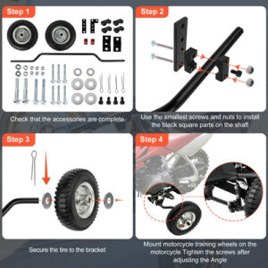 Modelos compatíveis: rodas de treinamento Dirt Bike compatíveis com o barbeador MX500 MX125 MX400 MX500 honda CRF50 XR50 CRF50F Z50 Z50R yamaha PW50 TTR50 PW80 e outras séries de motocicletas 50CC, não compatíveis com suzuki JR50, ktm SX-E 5. Materiais de alta qualidade – Modelos compatíveis: rodas de treinamento Dirt Bike compatíveis com o barbeador MX500 MX125 MX400 MX500 honda CRF50 XR50 CRF50F Z50 Z50R yamaha PW50 TTR50 PW80 e outras séries de motocicletas 50CC, não compatíveis com suzuki JR50, ktm SX-E 5. Materiais de alta qualidade – Estabilidade aprimorada: as rodinhas de treinamento para bicicletas sujas de 50 CC são projetadas para fornecer maior estabilidade e equilíbrio para iniciantes que estão aprendendo a pedalar. Com essas rodinhas acopladas à roda traseira das motocicletas, os ciclistas podem se sentir mais confiantes e seguros enquanto praticam suas habilidades de pilotagem. – Construção durável: rodinhas de treinamento para bicicletas sujas feitas de materiais de alta qualidade, essas rodinhas são feitas para durar. Eles são construídos com componentes metálicos resistentes que podem suportar os rigores das sessões de treinamento e proporcionar um desempenho duradouro. Você pode contar com essas rodinhas para apoiá-lo em toda a sua jornada de aprendizado. – Altura ajustável: as rodinhas de treinamento para bicicletas sujas são projetadas com altura ajustável, permitindo que você as personalize de acordo com suas necessidades específicas. Se você preferir uma configuração mais baixa para maior estabilidade ou uma configuração mais alta à medida que ganha mais confiança, você pode ajustar facilmente a altura para encontrar o equilíbrio perfeito para seu estilo de pilotagem. – Compra segura: rodinhas de treinamento de bicicleta suja para você resolver o problema em dez anos, para ter a certeza de usar. Se você estiver tendo problemas para instalar as rodinhas de treinamento para bicicletas sujas, forneceremos uma solução rápida e eficaz em 24 horas.