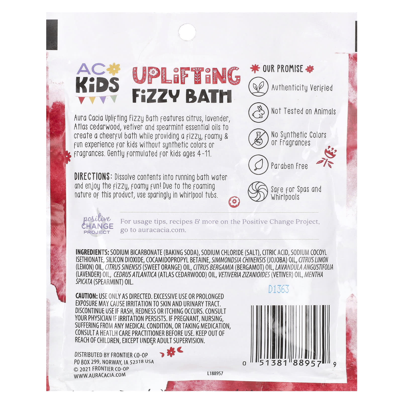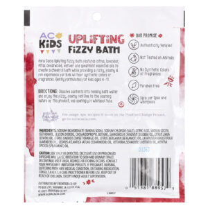 O Banho Efervescente Revigorante Aura Cacia contém óleos essenciais de frutas cítricas, lavanda, cedro-atlas, vetiver e hortelã para criar um banho agradável, ao mesmo tempo que proporciona uma experiência efervescente, espumosa e divertida para crianças sem corantes ou fragrâncias sintéticas. Formulado suavemente para crianças de 4 a 11 anos.