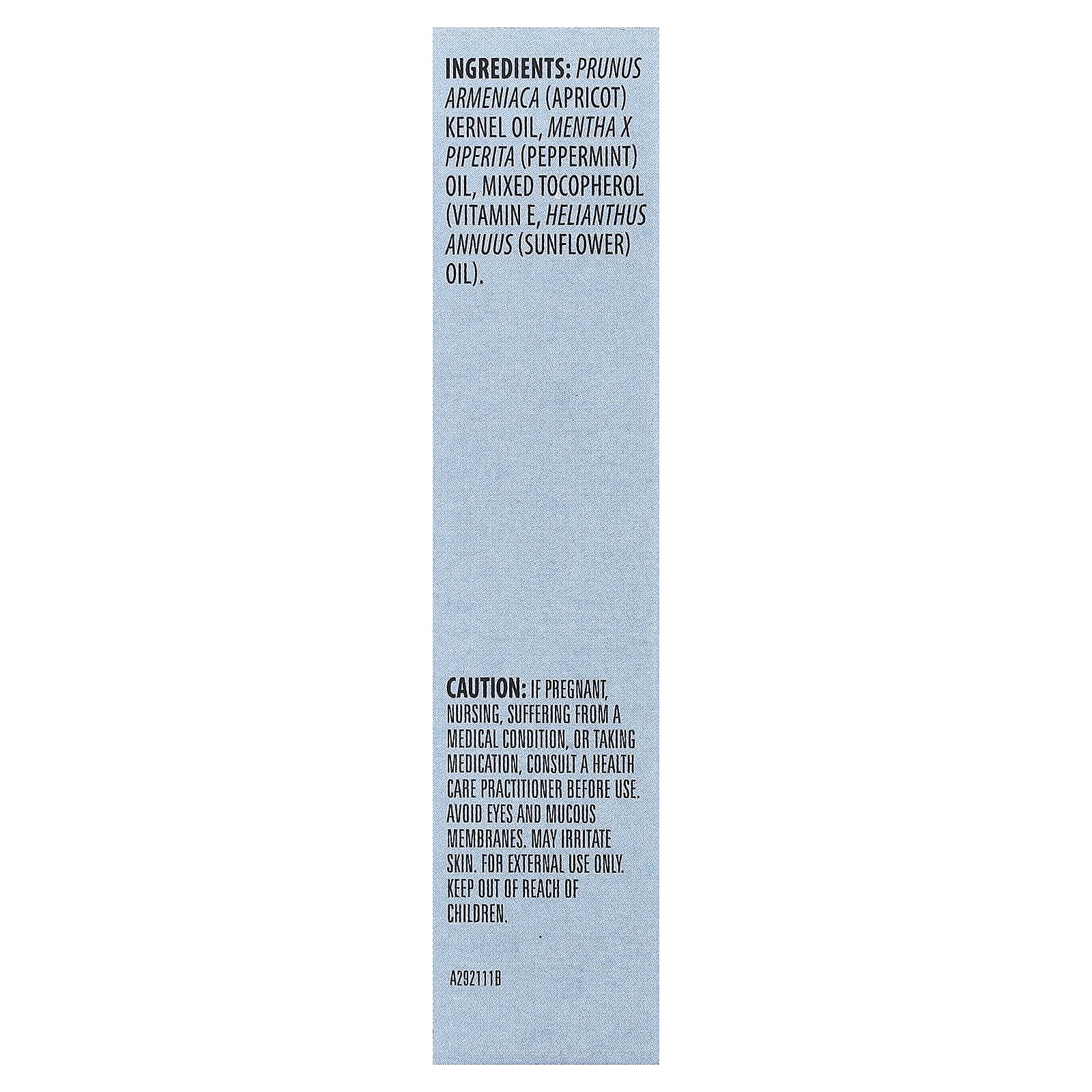Prunus armeniaca (óleo do caroço de damasco, óleo de Mentha piperita (hortelã-pimenta), tocoferol misto (vitamina E, óleo de girassol de Helianthus annuus)).