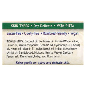 Especialmente benéfico para peles delicadas e envelhecidas, ajudando a mitigar os desequilíbrios de Vata e Pitta.