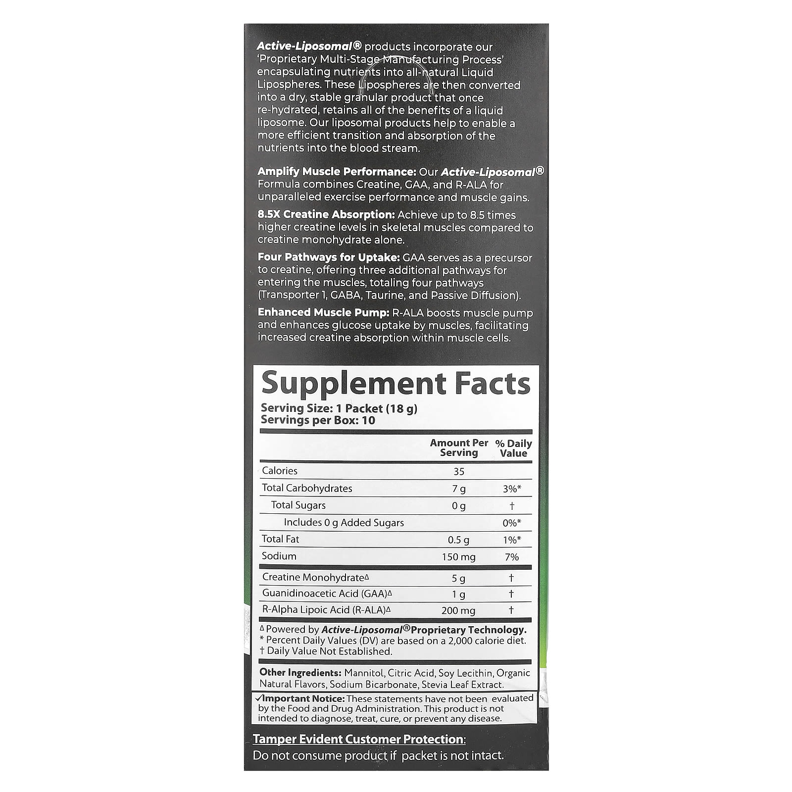 Aurora Nutrascience Creatina Active-Liposomal® Plus GAA e R-ALA 10 Embalagens de 18 g (063 oz) Cada – Aurora Nutrascience Nutrição Esportiva Creatina Monoidrato de creatina.