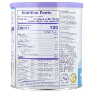 Alimento suplementar formulado para crianças pequenas a partir de 12 meses. A fórmula foi desenvolvida para complementar as necessidades alimentares de crianças pequenas, onde a ingestão de energia e nutrientes pode não ser adequada. Não adequado para crianças menores de 12 meses de idade.