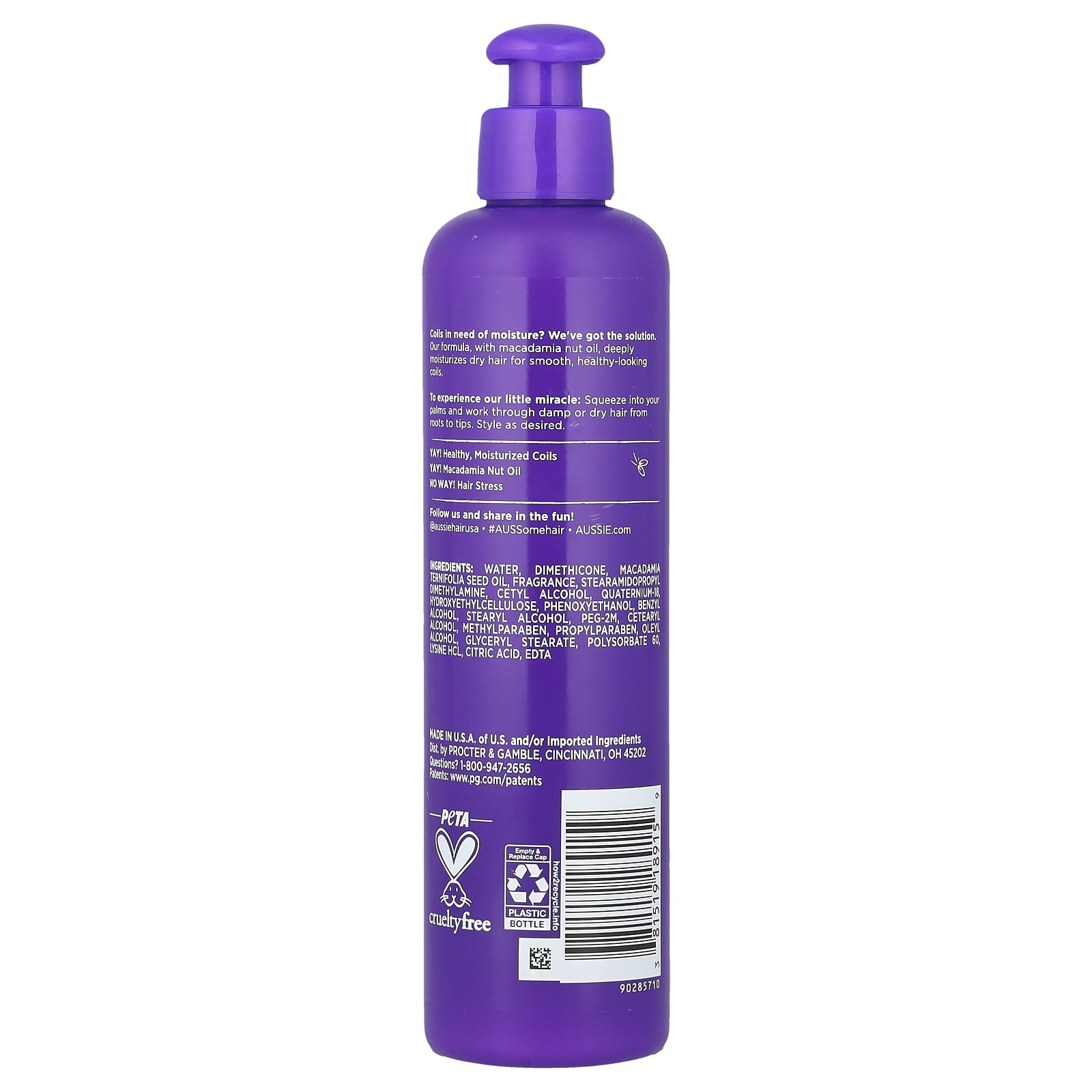 Aussie Miracle Coils Hidratante Leave-In com Óleo de Macadâmia 251 ml (85 fl oz) – Aussie Cuidados Pessoais Cabelos Condicionador Condicionador sem Enxágue.