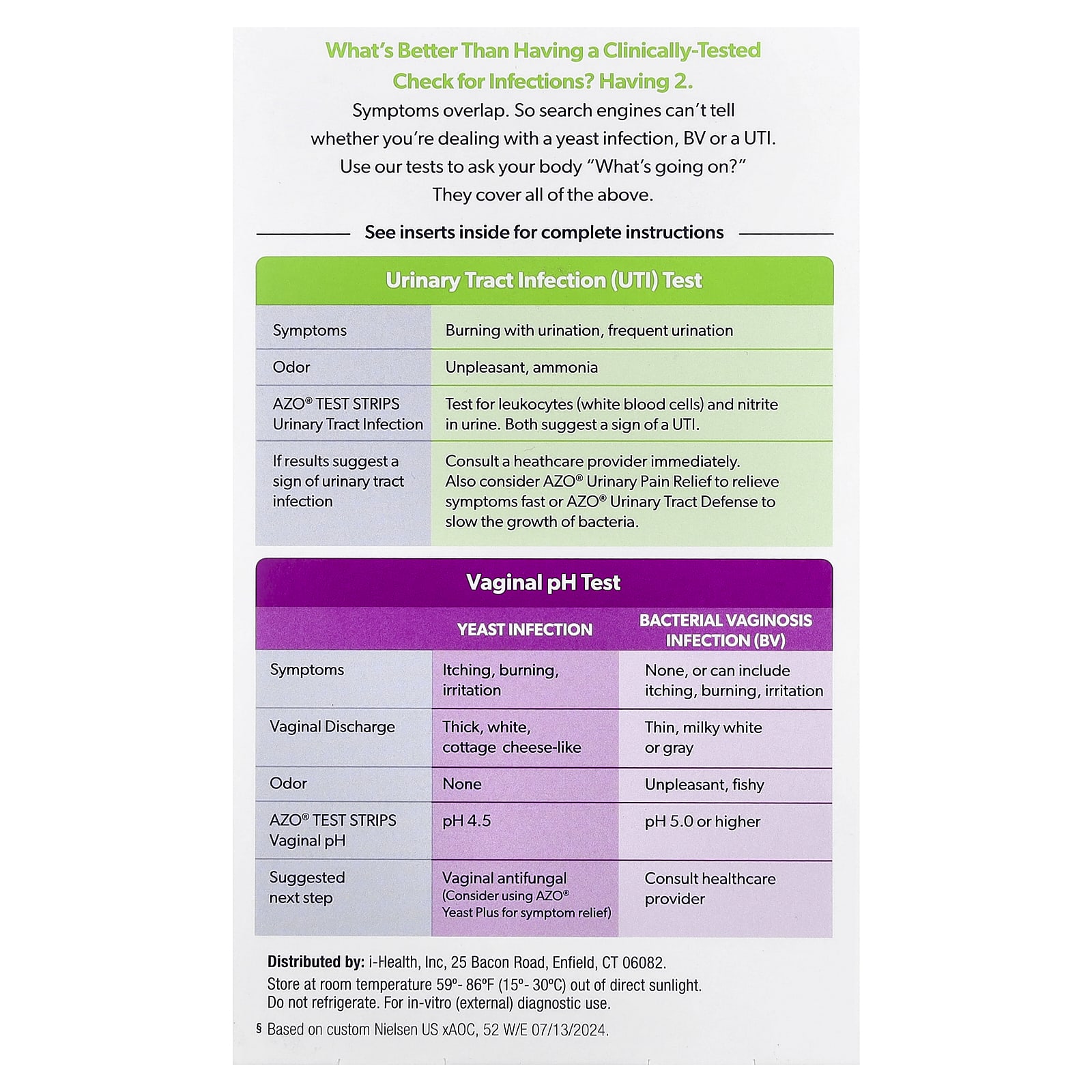 AZO Kit de Teste de pH Vaginal e para ITU Kit com 2 Unidades – AZO Cuidados Pessoais Armário do Banheiro Testes de Saúde em Casa.